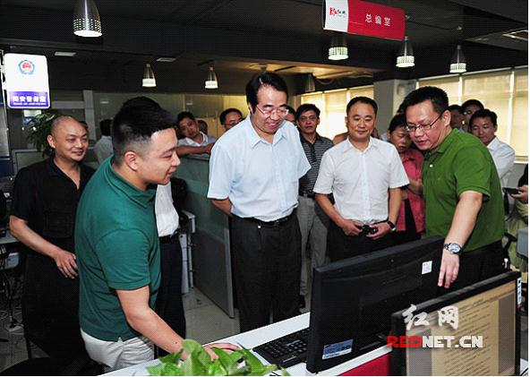 2012年7月4日,湖南省省委常委、省委宣傳部部長許又聲視察中南傳媒,到各內(nèi)容生產(chǎn)單位實地指導(dǎo)工作。
