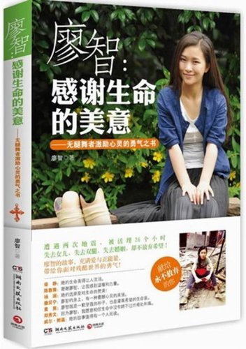 《廖智:感謝生命的美意》一書(shū),記載了廖智作為一個(gè)失去雙腿的舞者對(duì)生命的思索和對(duì)夢(mèng)想的追尋的勵(lì)志經(jīng)歷。此書(shū)由中南傳媒旗下的博集天卷和湖南文藝出版社精心制作,排版精美,有大量廖智在生活和排練中的真實(shí)照片,悲愴的舞姿震撼人心。此書(shū)上市后被稱(chēng)為“激勵(lì)心靈的勇氣之書(shū)”,大量廖智的內(nèi)心獨(dú)白感人至深,獲得柴靜、楊瀾、撒貝寧、魯豫等眾多名人的推薦。