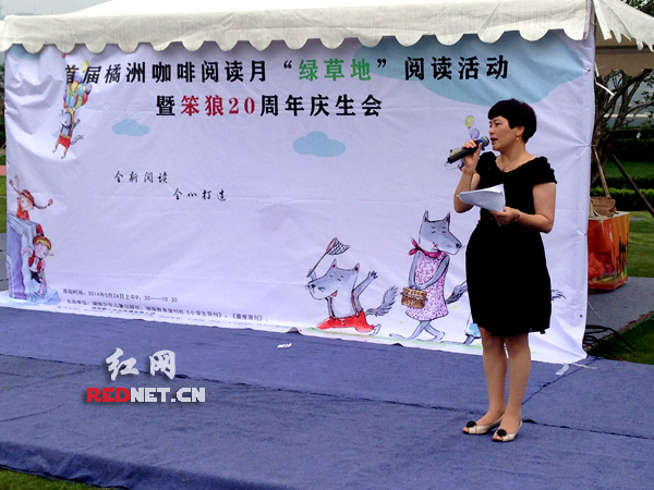 5月24日,首屆橘洲咖啡閱讀月•“綠草地”閱讀行動暨笨狼20周年慶生,在長沙橘子洲頭景區(qū)內(nèi)的沙灘公園舉行。著名作家“笨狼媽媽”湯素蘭,湖南省委宣傳部副部長魏委,湖南省新聞出版局副局長毛良才,湖南省委宣傳部出版處處長李武祥,中南出版?zhèn)髅郊瘓F出版部部長田方斌,湖南少年兒童出版社副社長吳雙英,湖南少年兒童圖書館館長薛天,省文化廳木偶劇團團長譚青松,兒童文學(xué)作家鄧湘子、皮朝暉、唐櫻、周靜等嘉賓紛紛到場,為提倡我國少年兒童多讀書、讀好書貢獻力量。