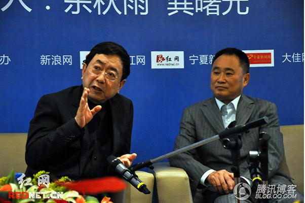 銀川書博會期間,龔曙光董事長(右)和余秋雨先生(左)就文明傳播者的當(dāng)代使命進(jìn)行對話。