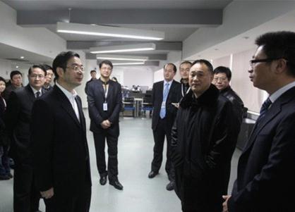 湖南省委書記周強(qiáng)在中南傳媒董事長(zhǎng)龔曙光(右三)陪同下視察天聞數(shù)媒公司