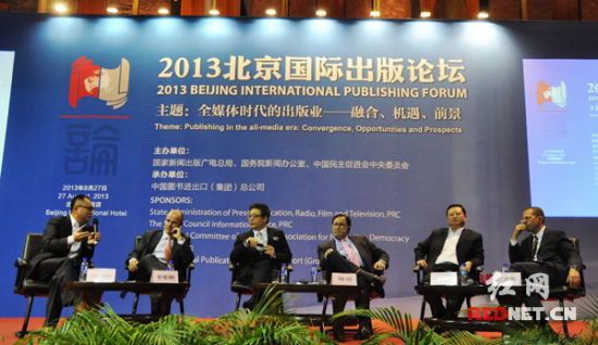 2013北京國際出版論壇開幕,中外知名出版機(jī)構(gòu)負(fù)責(zé)人齊聚論壇,圍繞全媒體時代的出版業(yè)發(fā)展進(jìn)行討論交流