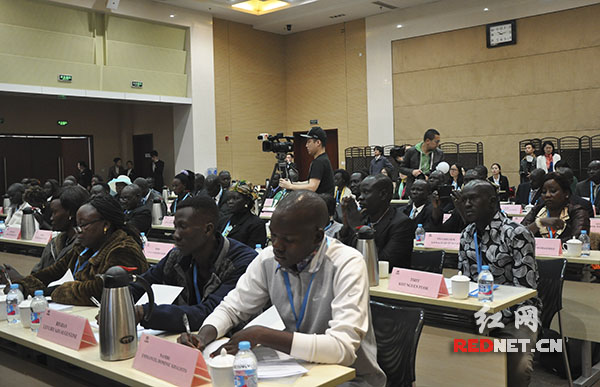 南蘇丹總統(tǒng)教育顧問威廉姆?亞昆提波(William Akuenytiop)、南蘇丹駐華大使邁克爾?米利?侯賽因(Michael Milli Hussein)、教育部次長邁克爾?隆格里奧(Michael Longolio),商務(wù)部國際商務(wù)官員研修學(xué)院副院長何定和中南出版?zhèn)髅郊瘓F(tuán)董事長龔曙光、副總經(jīng)理陳昕,以及聯(lián)合國教科文組織國際農(nóng)村教育研究與培訓(xùn)中心主任趙玉池等中外嘉賓,一同見證了當(dāng)天的培訓(xùn)開班儀式并致辭。