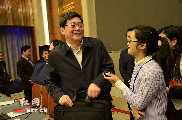 2月11日,湖南省委副書(shū)記、省長(zhǎng)杜家毫(左)在參加完長(zhǎng)沙代表團(tuán)小組討論后接受紅網(wǎng)采訪,他勉勵(lì)紅網(wǎng),鏡頭要多對(duì)準(zhǔn)老百姓,多反映群眾的愿望和呼聲。
