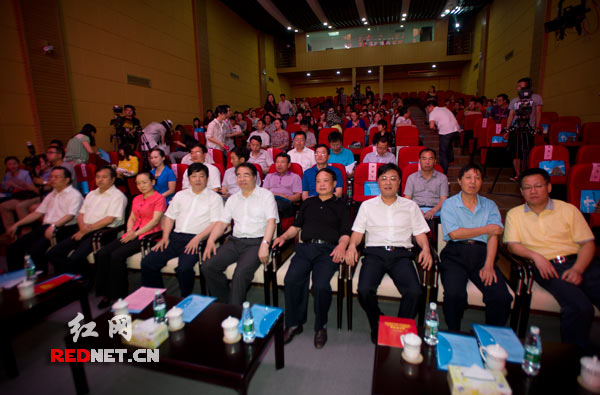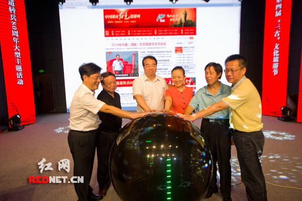 6月27日上午,湖南省委常委、省委宣傳部部長(zhǎng)許又聲[前排左五]等領(lǐng)導(dǎo)參加在紅網(wǎng)演播大廳舉行的2014年中國(guó)(湖南)紅色旅游節(jié)新聞發(fā)布會(huì)暨中國(guó)湖南紅色旅游網(wǎng)啟動(dòng)儀式。