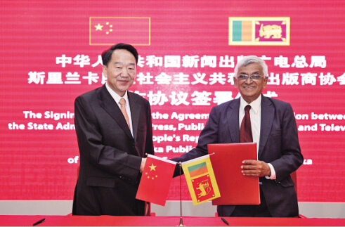 中國國家新聞出版廣電總局與斯里蘭卡出版商協(xié)會(huì)簽署合作備忘錄。