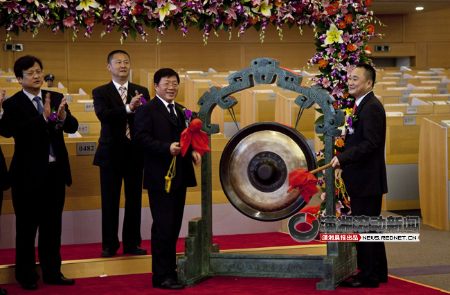紅網(wǎng)上海10月29日訊(瀟湘晨報記者 張冬萍)在這個充滿創(chuàng)意、夢想和機(jī)遇的舞臺上,已經(jīng)很久沒有出現(xiàn)過龍頭的身影,一切靜默只為期待中南傳媒的到來。10月28日,在國家新聞出版總署副署長鄔書林等領(lǐng)導(dǎo)的見證下,湖南省委常委、宣傳部長路建平與中南傳媒董事長龔曙光一道鳴鑼開市,代碼為“601098”的中南傳媒正式登陸上海證券交易所,掛牌首日漲30%,股票市值達(dá)到248億元,一躍成為出版?zhèn)髅桨鍓K資產(chǎn)規(guī)模最大、股票市值最高的新龍頭。