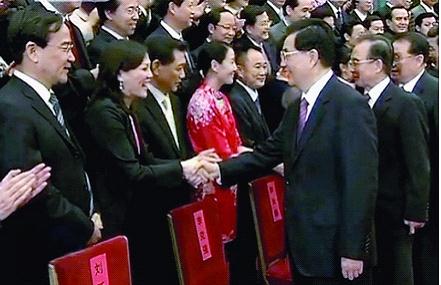 9月26日,全國文化體制改革工作表彰大會在北京人民大會堂舉行。會前,胡錦濤、溫家寶、李長春、習(xí)近平、李克強等會見全體與會代表。(央視截圖)
